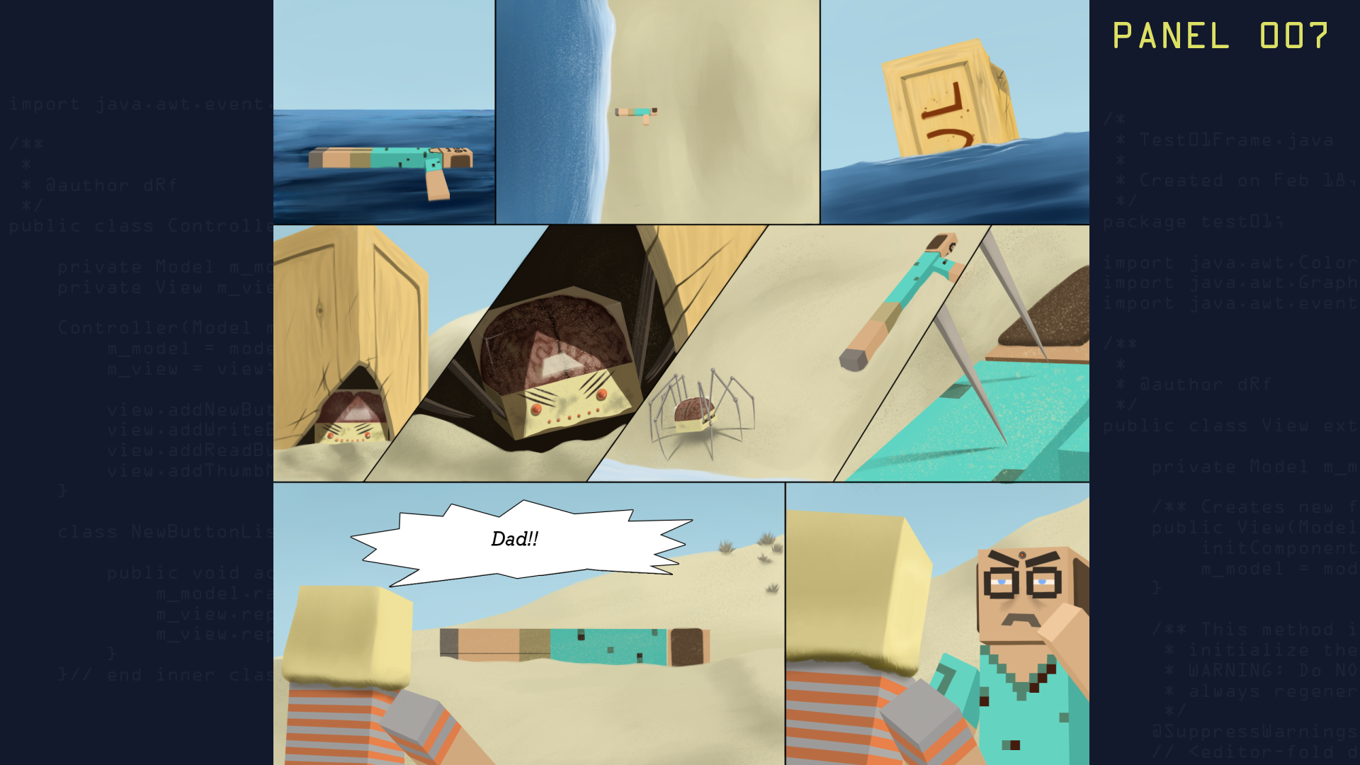 The Others - In a season 2 episode of the same name, EG Mk 5 tells Splice that "The Others" have not appeared and that he is sending the transmissions from Dad's camera out into the world so "The Others" might discover it and subsequently find their way back to him. Is he referring to YouTube viewers or others out there "like him" or something else entirely? Study the graphic novel panels for more clues to who or what the others might be....