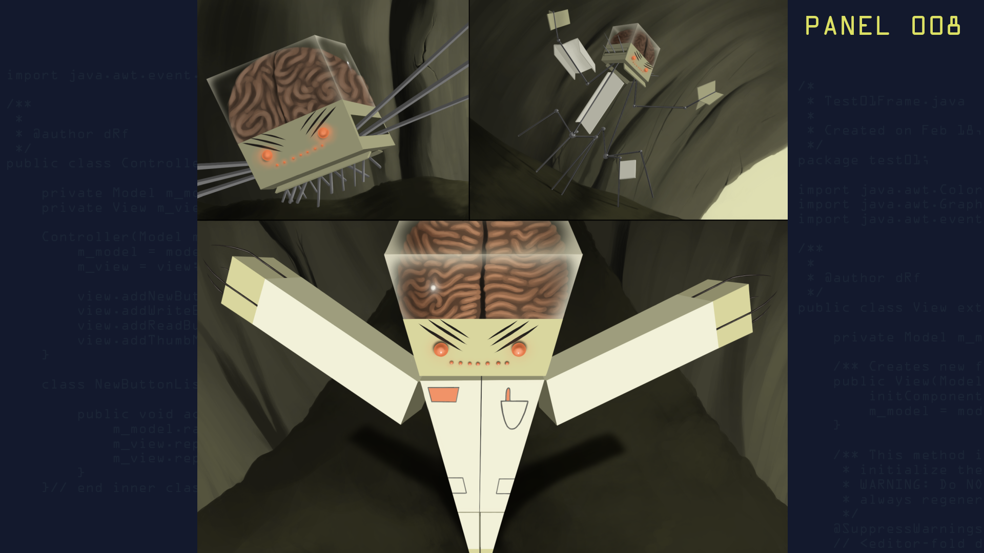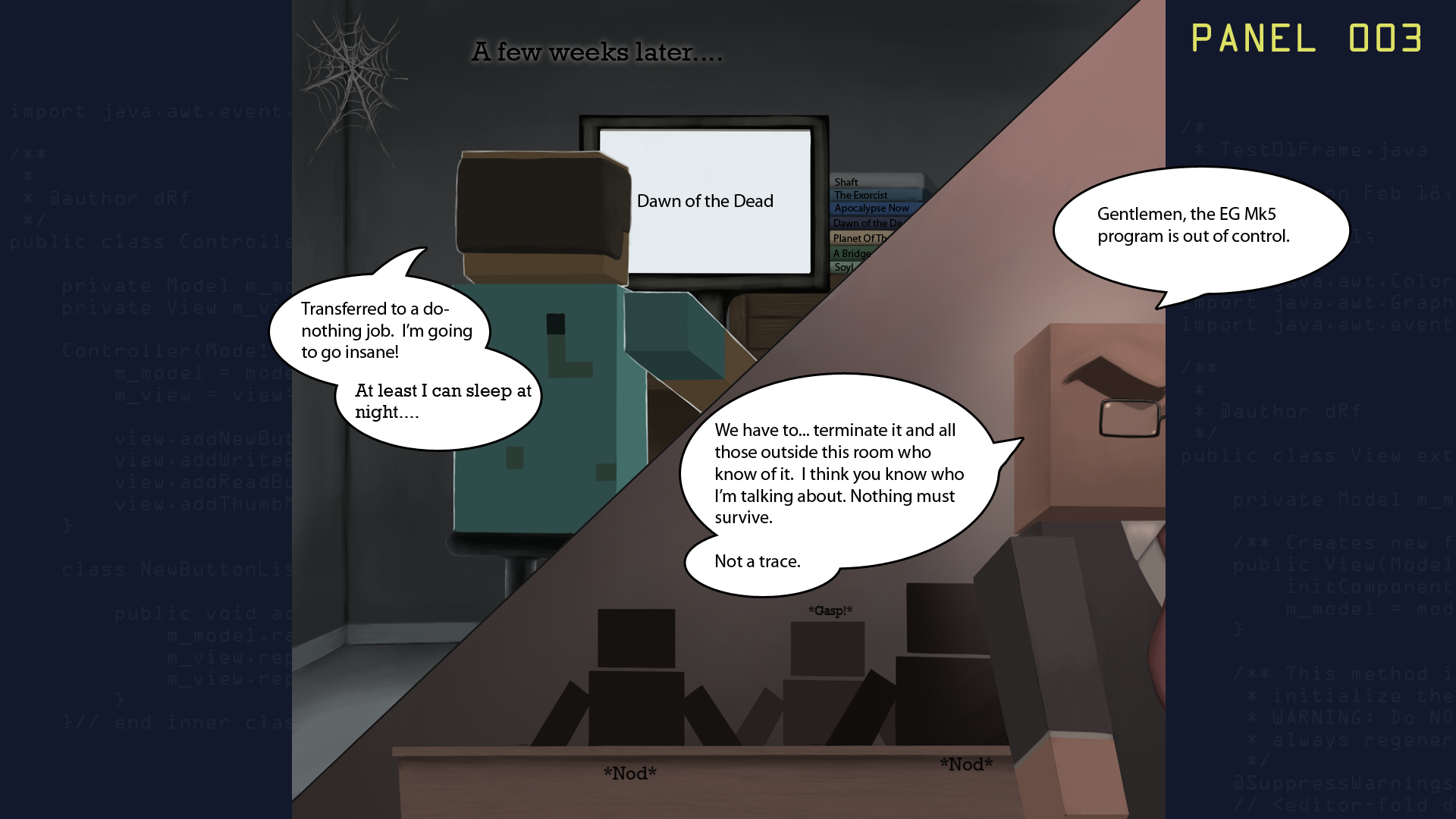 The Others - In a season 2 episode of the same name, EG Mk 5 tells Splice that "The Others" have not appeared and that he is sending the transmissions from Dad's camera out into the world so "The Others" might discover it and subsequently find their way back to him. Is he referring to YouTube viewers or others out there "like him" or something else entirely? Study the graphic novel panels for more clues to who or what the others might be....