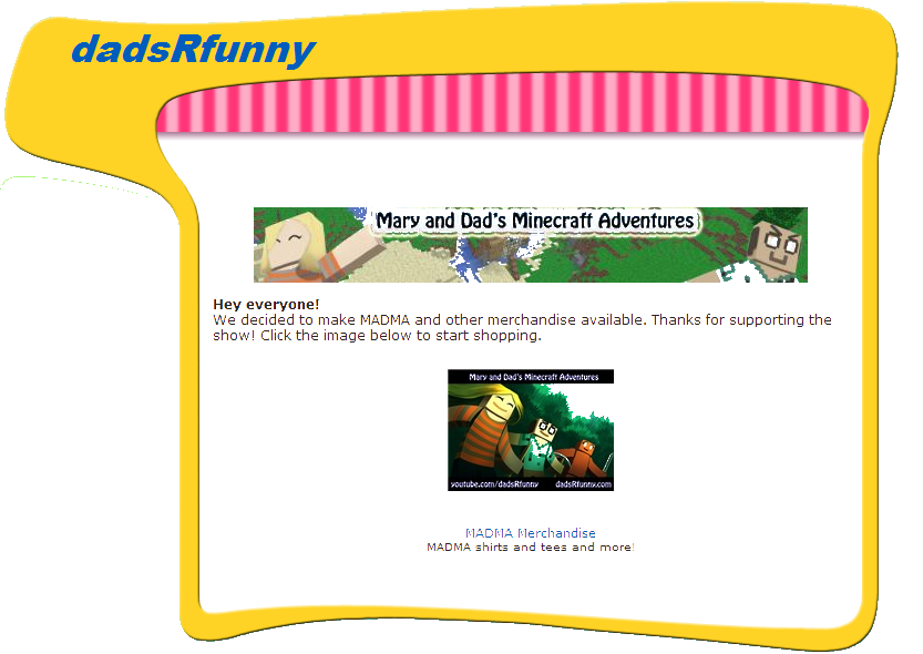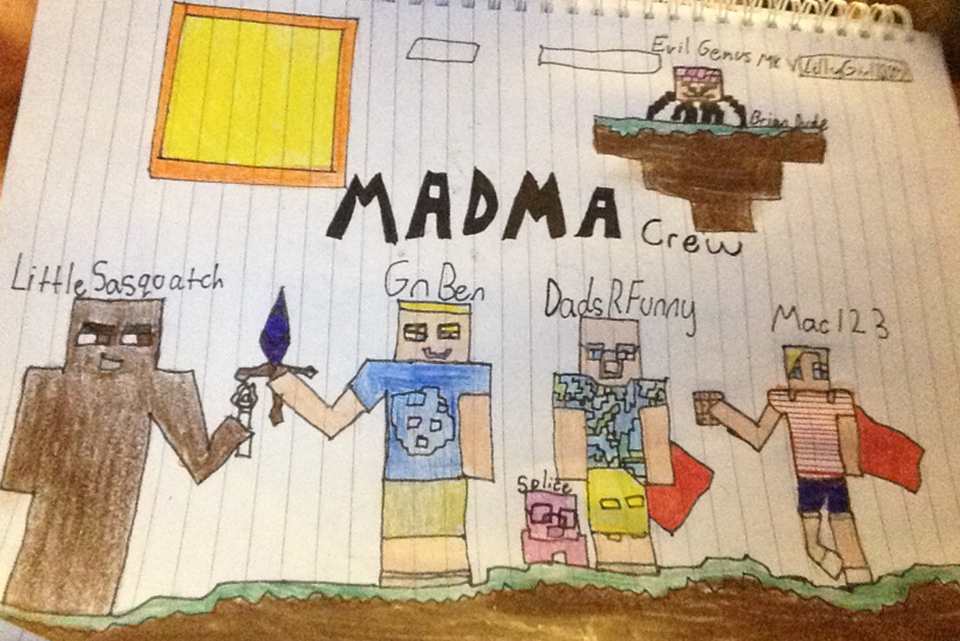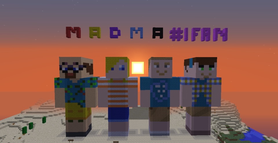 The Bedrock Walls - The original MADMA map, approximately 25x25 chunks in size, is surrounded by bedrock walls. Outside these walls lay a land of "unreality." Dad dies outside the walls and finds himself instantly resurrected, albeit confused. The walls first appear in episode 27 when Mary and Dad finally make it back from the Nether. This timing is no coincidence. The walls were added as a result of the terrain generation algorithm changing from Minecraft 1.7.3 beta to 1.8 beta. Previously generated chunks would no longer "match up" with terrain generated by the new Minecraft engine. So the walls were added to explain the chunk boundary issues.